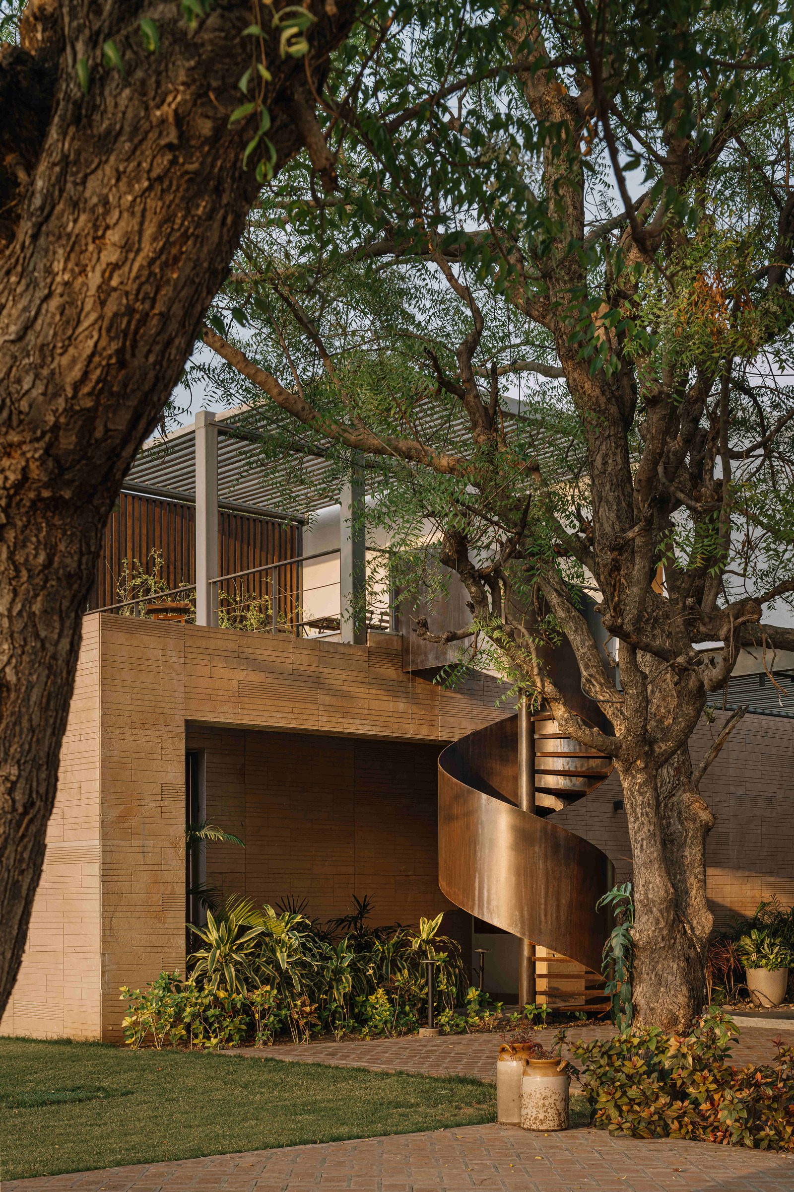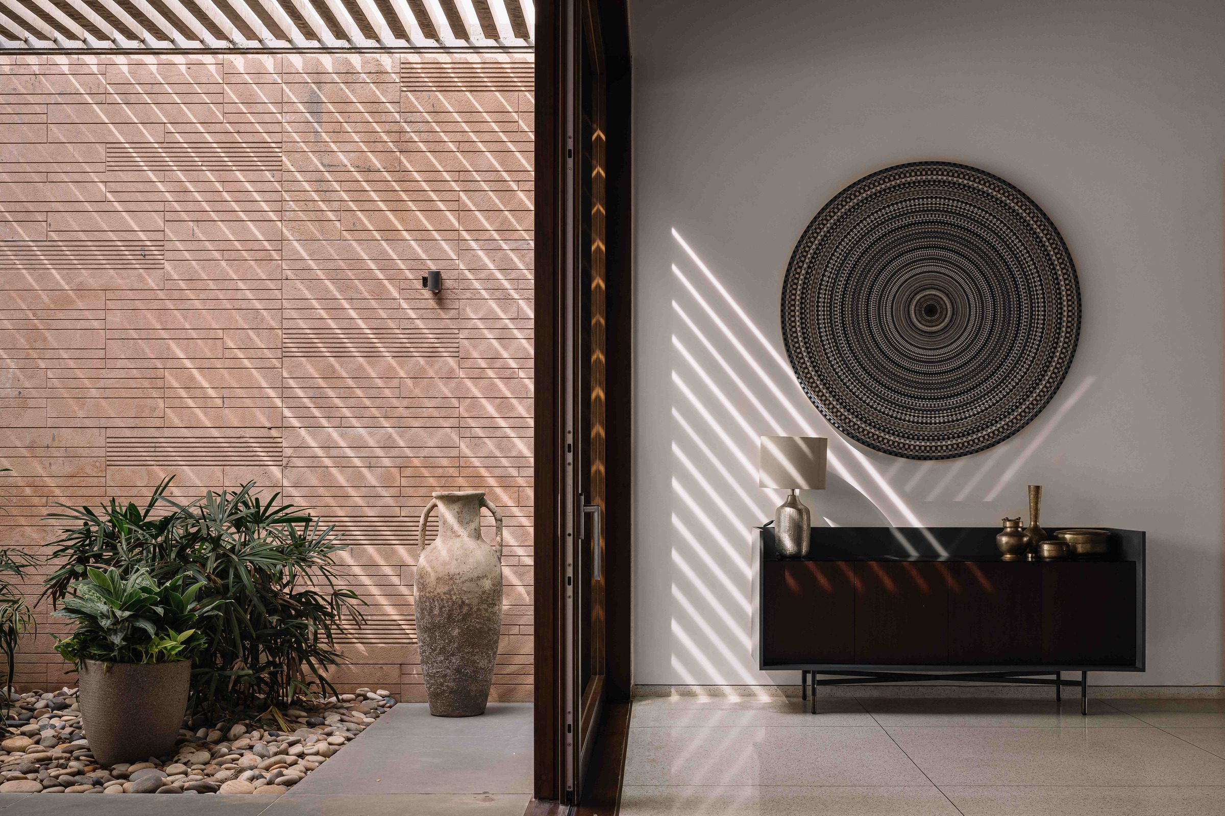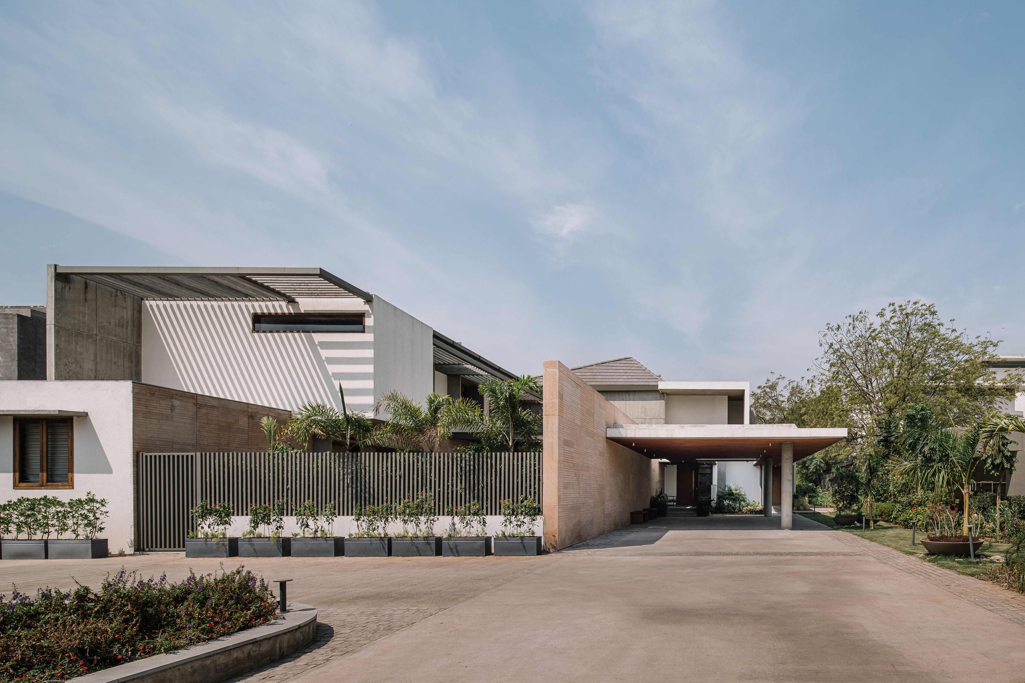 While conceiving the architecture for this home in Ahmedabad, one of our primary drivers was a response to the hot and dry summers in the city, with average daytime temperatures reaching 44 degrees Celsius.