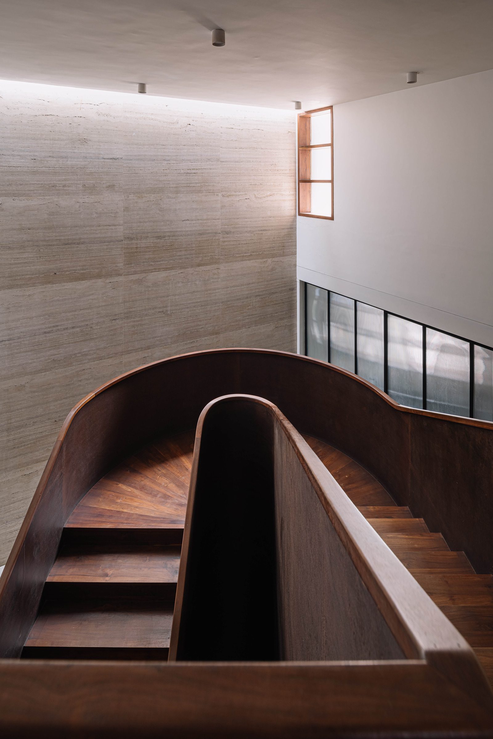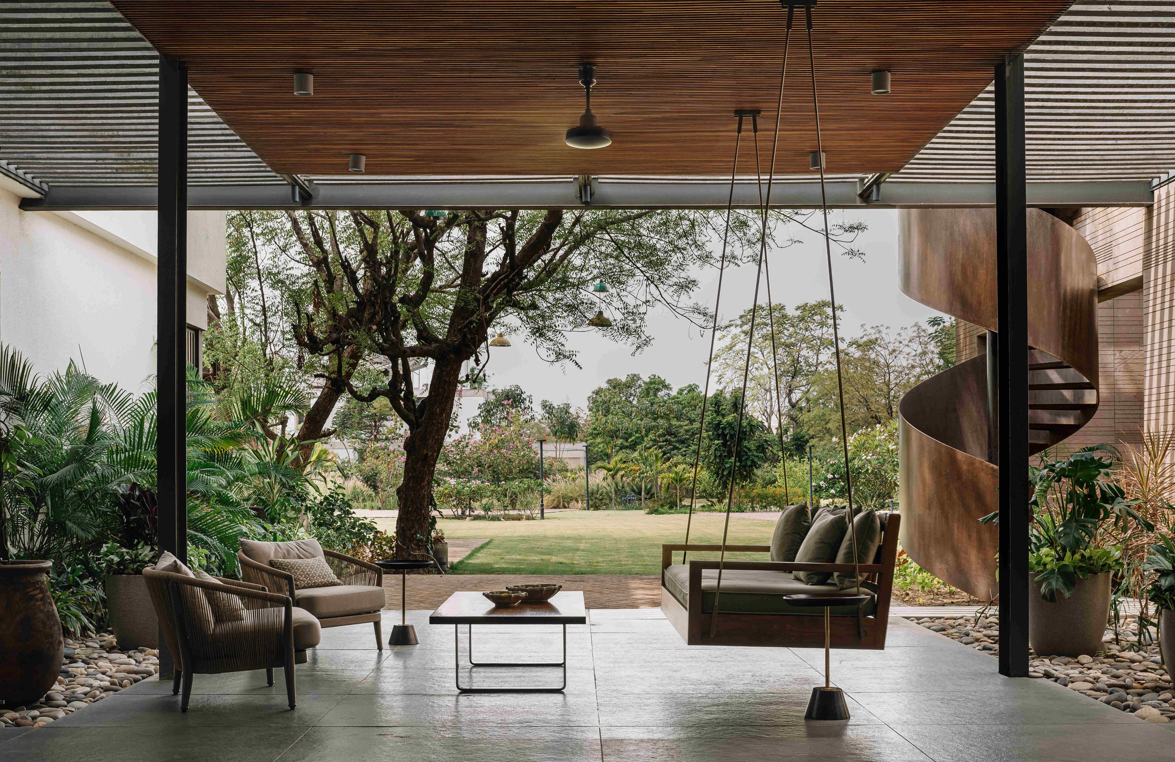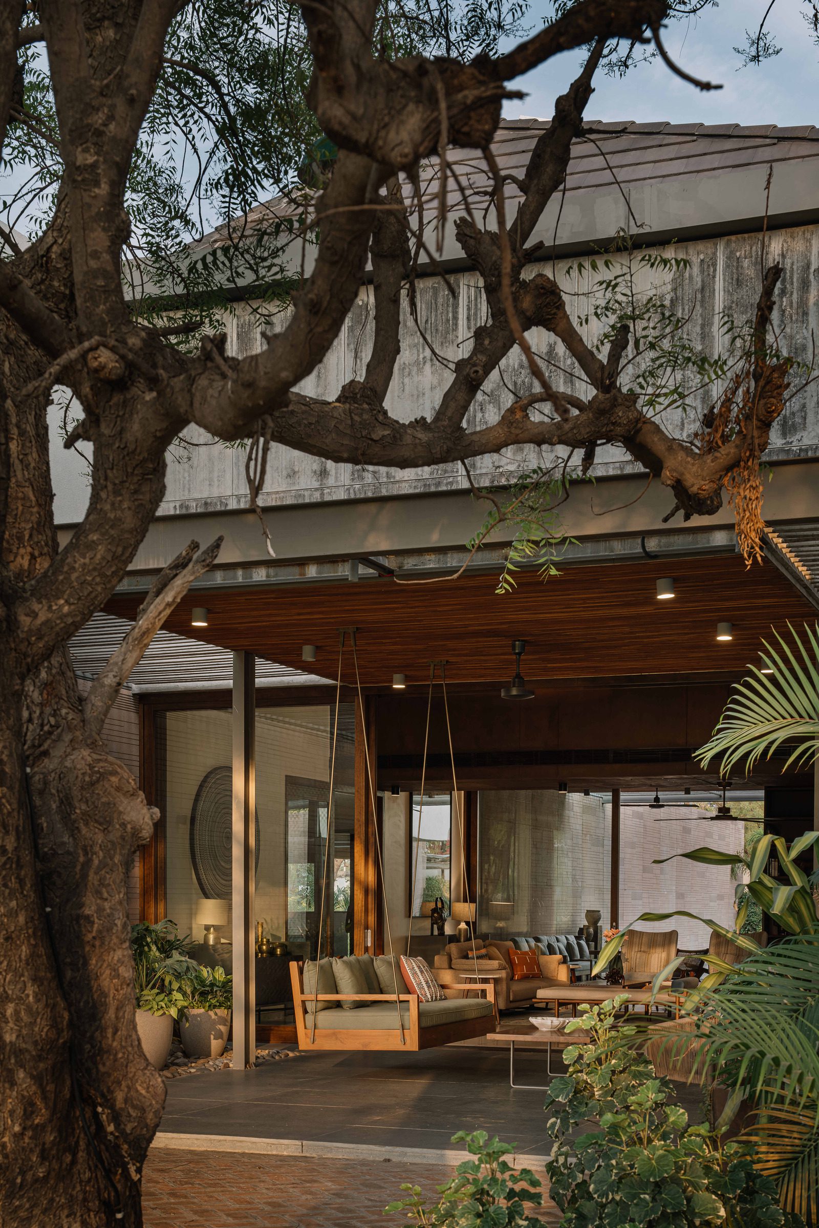 While conceiving the architecture for this home in Ahmedabad, one of our primary drivers was a response to the hot and dry summers in the city, with average daytime temperatures reaching 44 degrees Celsius.