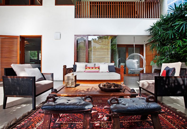 The space is peppered with a few antique chests, rugs and some traditional pieces which offset the other contemporary pieces and lighting. The colours are light with accents in earth tones.