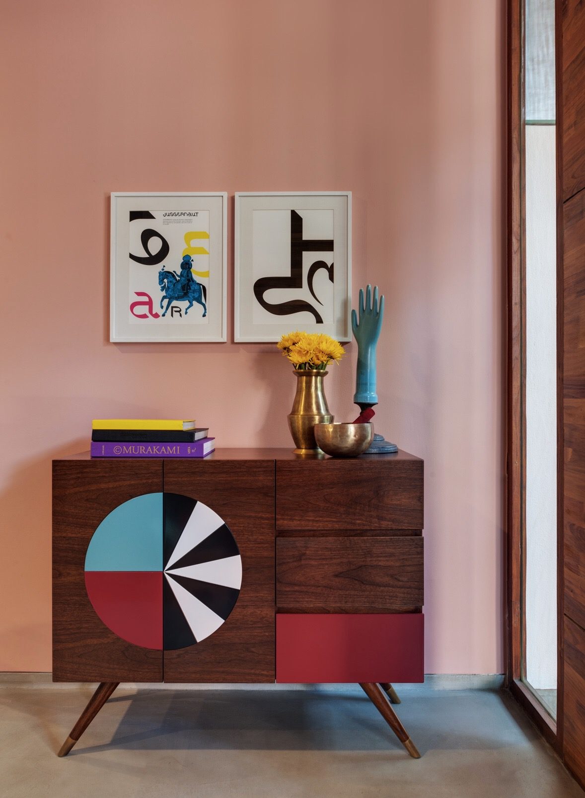 The studio is peppered with some mid-century furniture pieces picked up at a garage sale when a 1950’s Bangalore house was being demolished. These pieces were lovingly restored to their original condition. Adding to this were other customized pieces, eclectic accessories, and a plethora of samples and prototypes reflecting the sensibility and ethos of both the design studios.