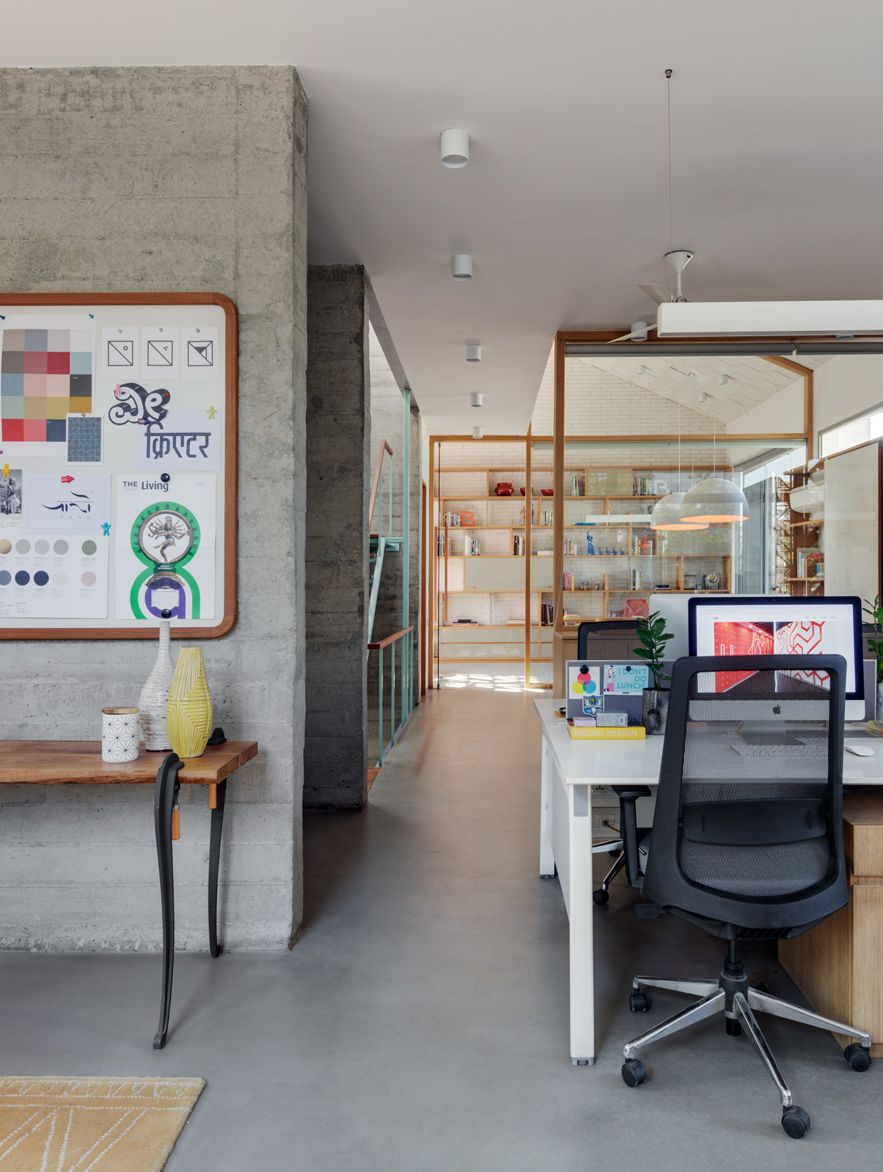 The design of the architectural studios of Khosla Associates and the graphic Design studios of tsk Design was a collaborative process between both studios. The constraints of a tight plot of land had us think primarily in terms of maximizing efficiency while still maintaining a feeling of openness and light.